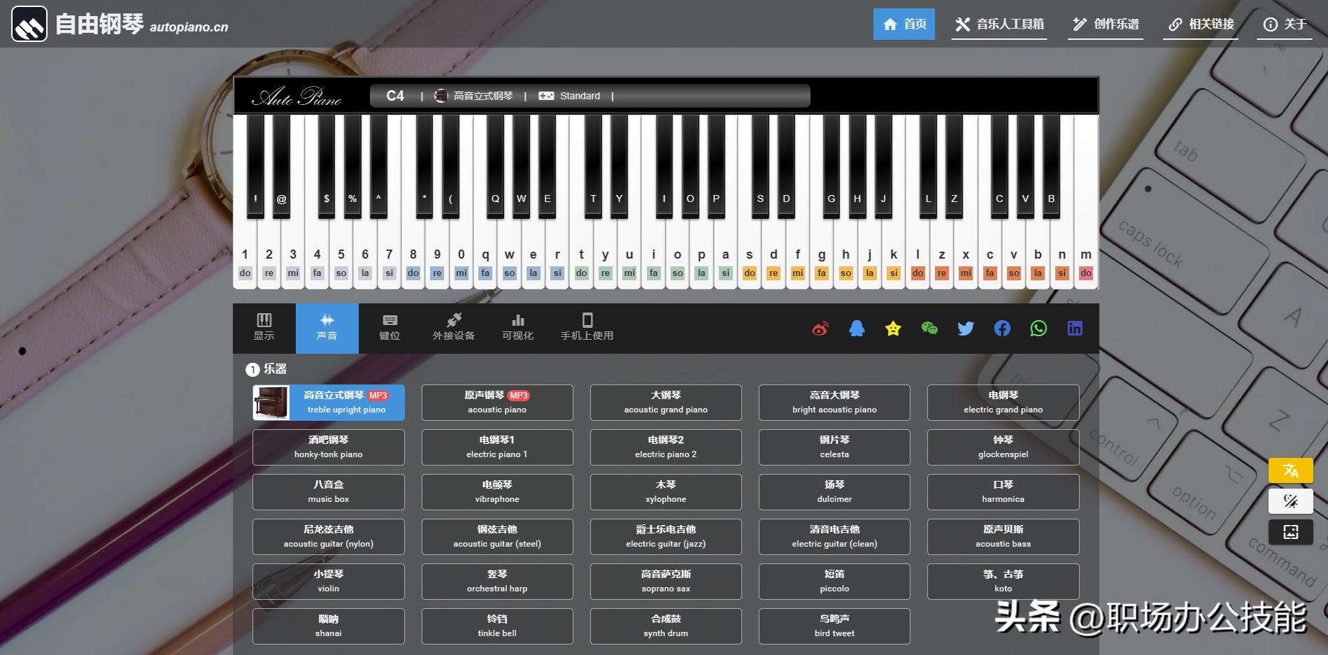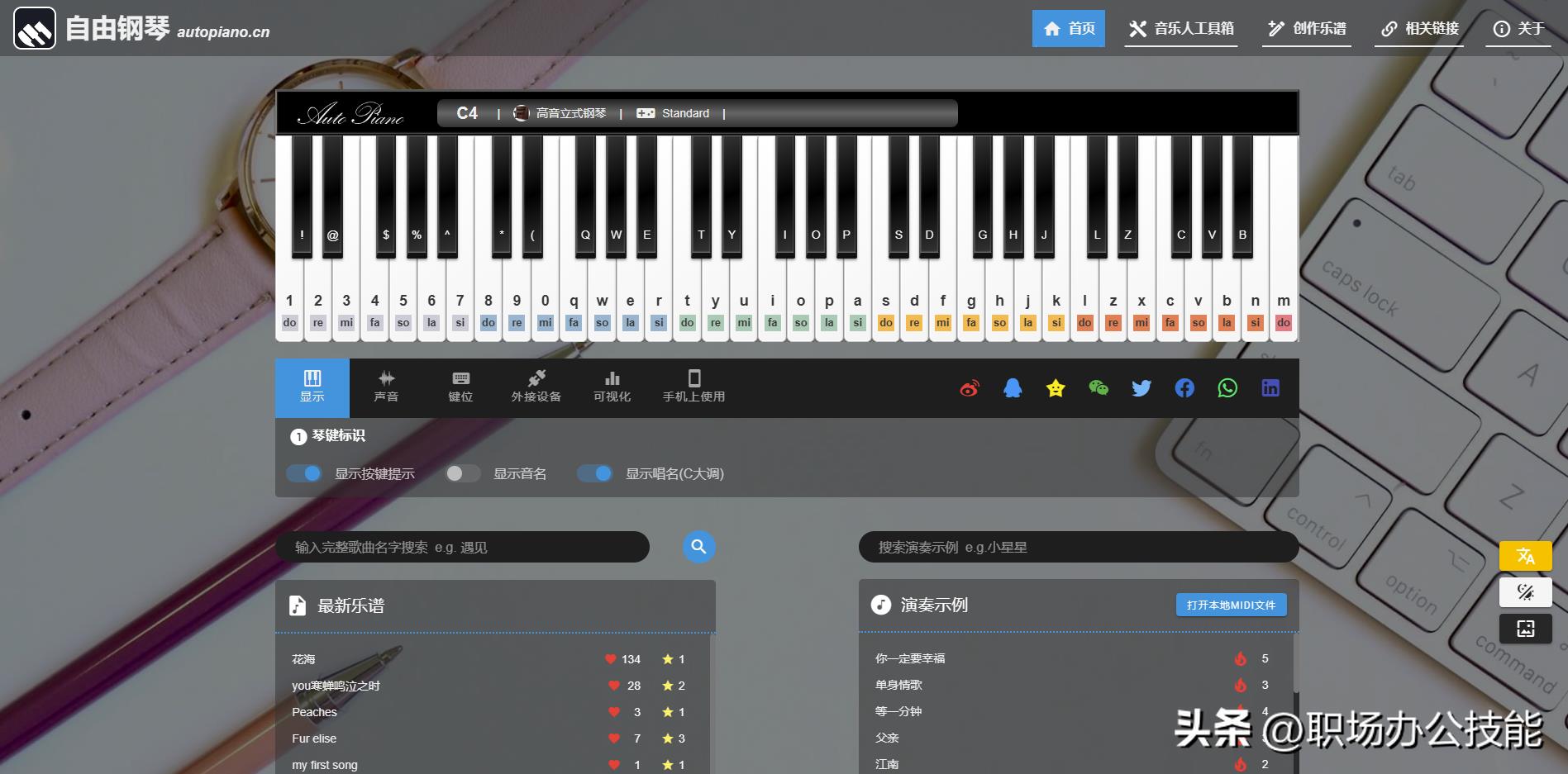 一个可以在线弹钢琴的网站,琴键上标注了对应的字母,在键盘上点击字母就会发出对应琴键的声音,或者鼠标点击也能发出声音,不过用键盘弹的话更有感觉。