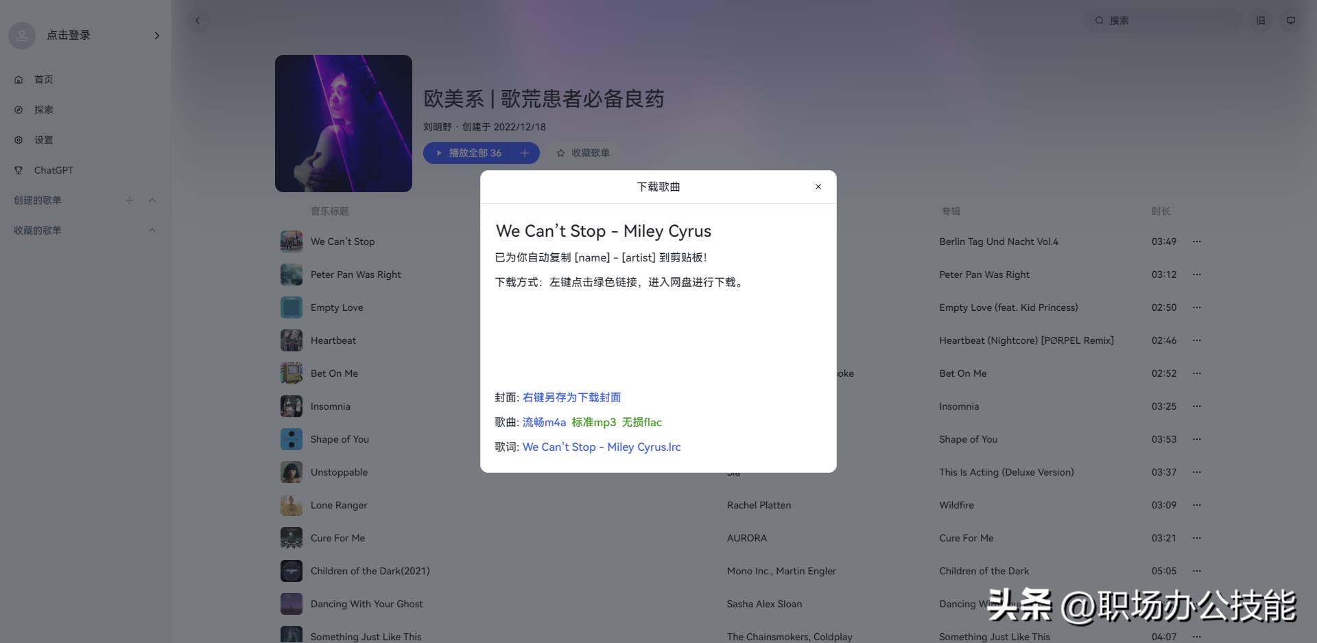并且这里面的音乐都是可以免费下载到本地的,在播放列表中点击下载按钮就行,有不同品质可选,还可以下载歌曲封面和歌词,下载的时候还不用注册登录。
