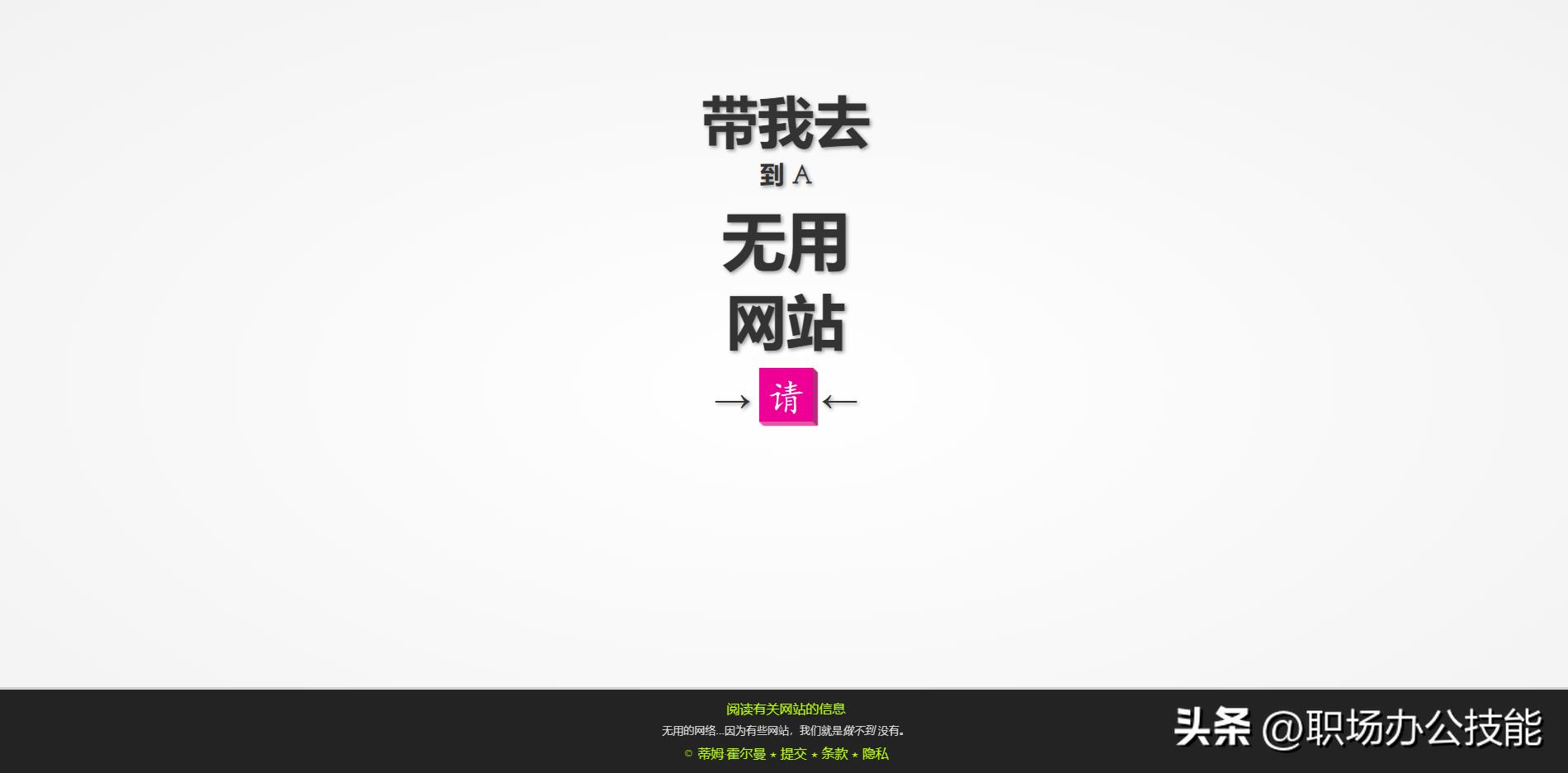一个可以进入未知世界的网站,它里面收录了很多奇奇怪怪的网站,在首页点击please按钮之后,就会随机跳转到各个神奇的无聊网页,每次都有不一样的惊喜。