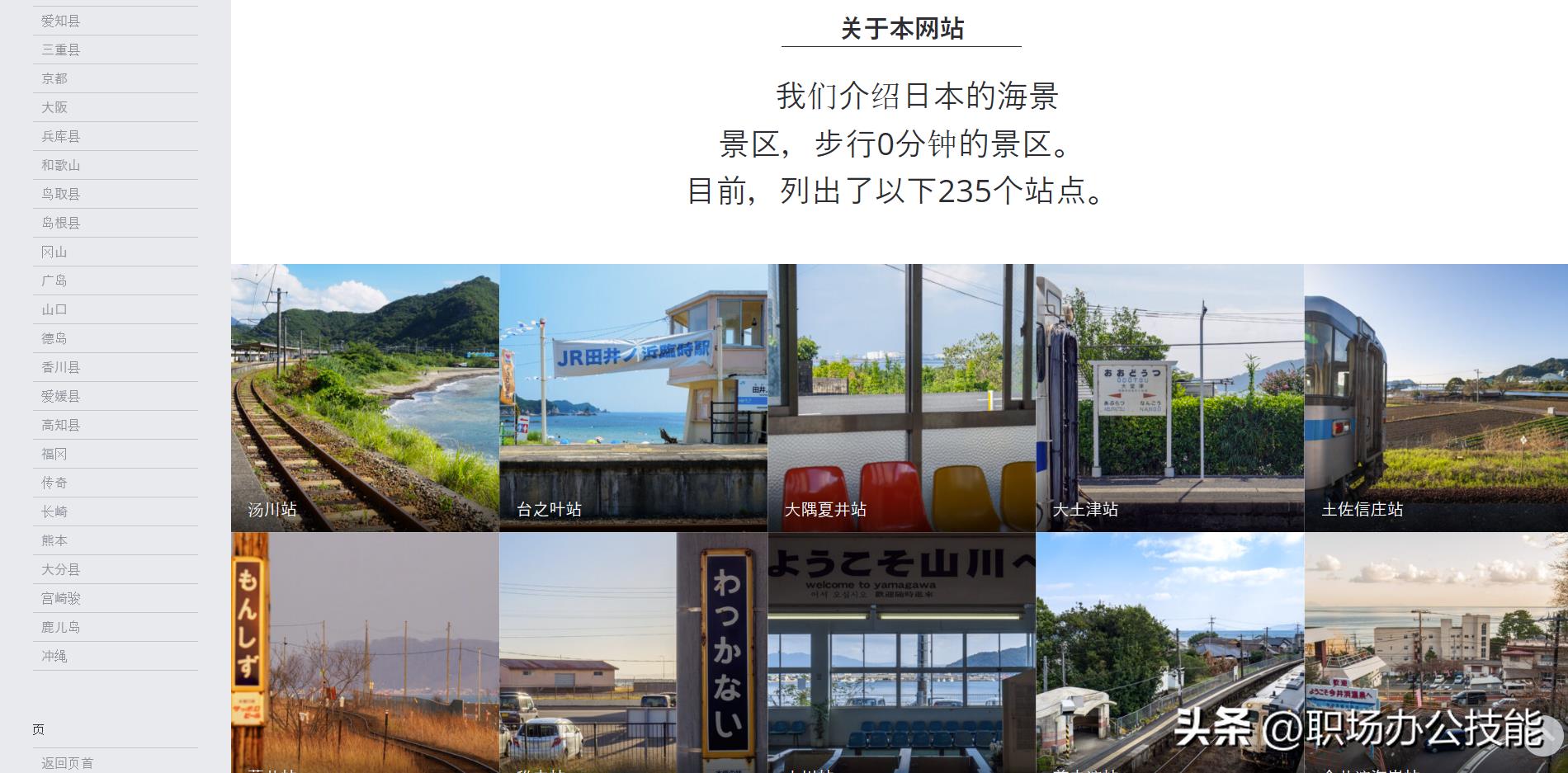 一个专门分享日本海景车站的网站,目前收录了235个海景车站,可以根据地点查看,有的车站风景很漂亮,还会有一些简单的介绍。