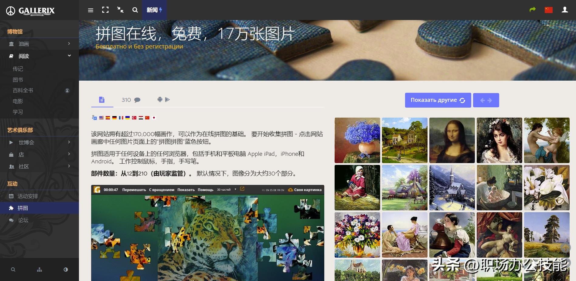 一个加勒里克斯在线博物馆网站,里面收录了17W幅绘画作品,些世界著名的画作在这都能看到,比如达芬奇的蒙娜丽莎、梵高的向日葵、维米尔的戴珍珠耳环的少女等等。