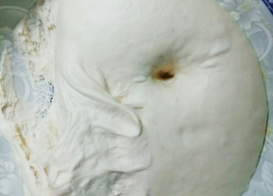 2、放温暖处静置发酵,面团长高了,扒开一看有蜂窝状就是发好了。