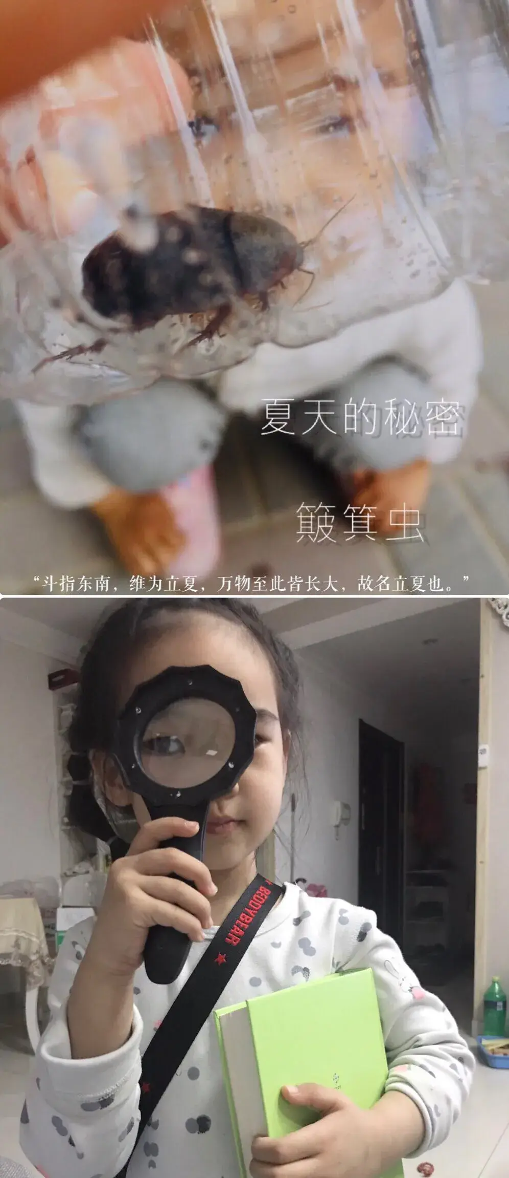 通过活动,让孩子知道了关于立夏的知识;使孩子们了解了夏季里的植物昆虫,发现具有夏天特点的自然密码。利用放大镜寻找草丛里的小昆虫,勾起幼儿观察学习自然的好奇心。