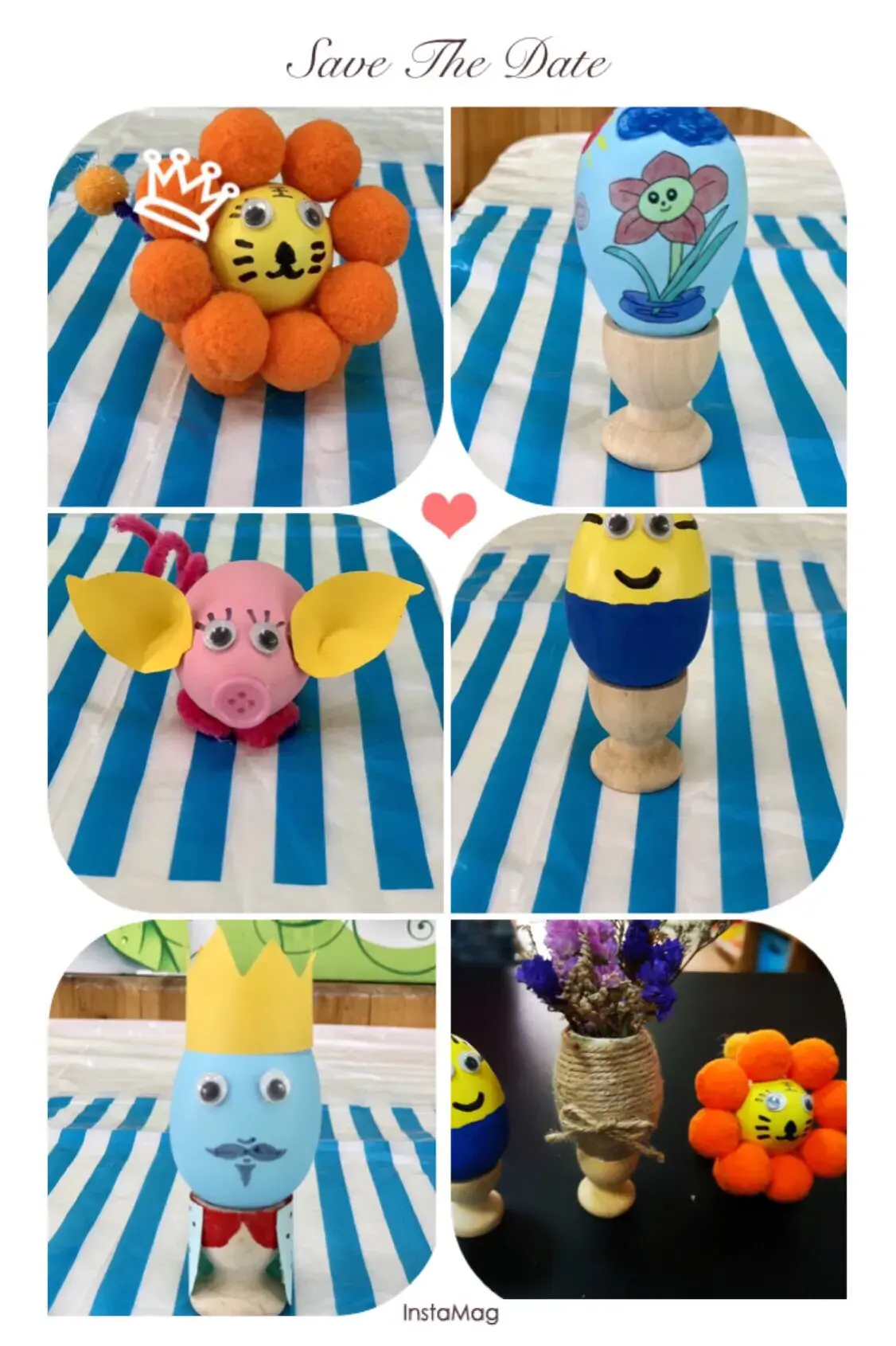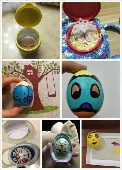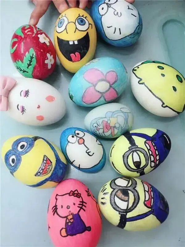 孩子们运用各种材料和方法,大胆地为蛋宝宝进行装饰。