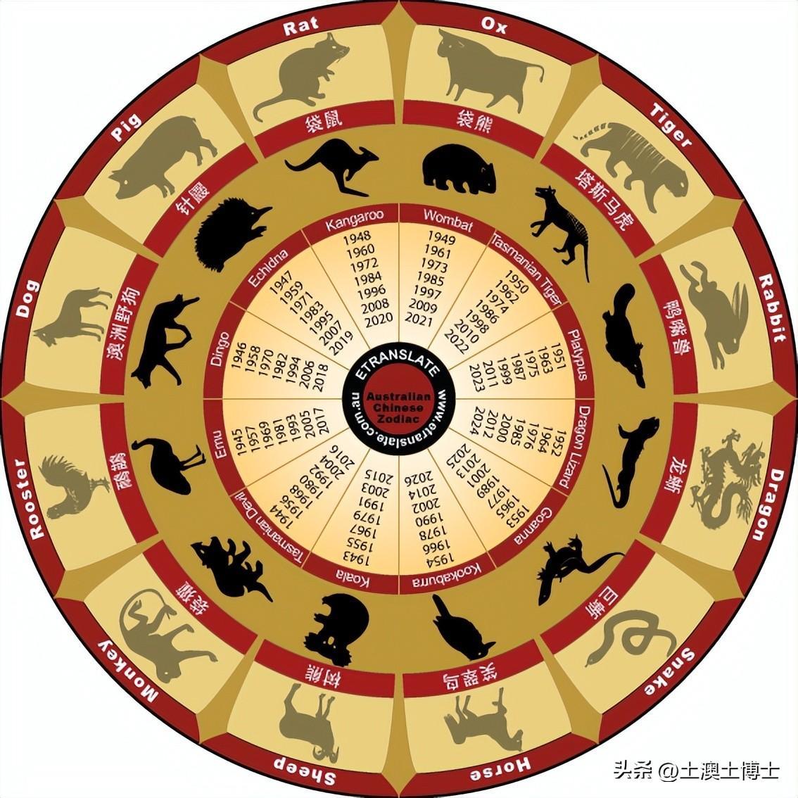 有趣的是,澳洲也把自己的本土动物弄进了十二生肖,如下图。
