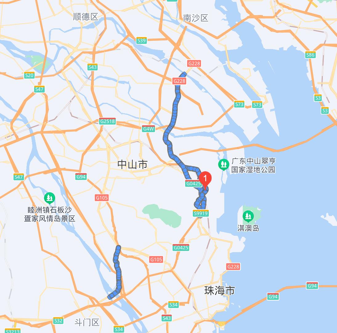 在中山市的G228国道,是从广州南沙出发,经过中山三角、民众、开发区、南朗等地,另一段去到神湾,进入珠海,中间断层那段不知道什么回事。