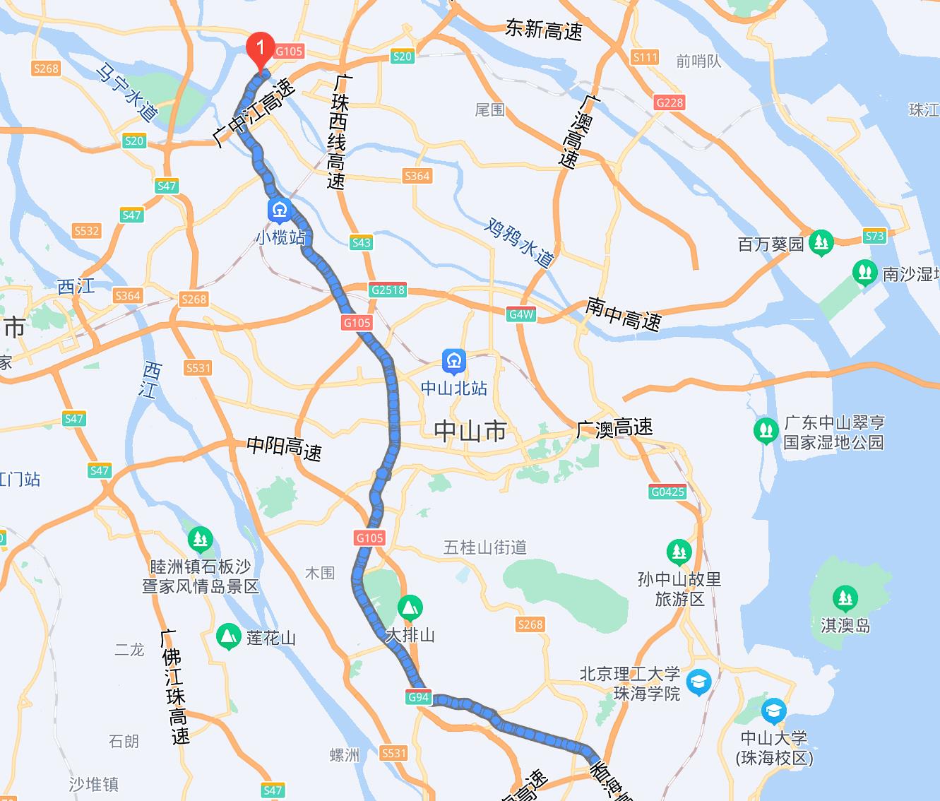 在中山市内,G105国道完整的穿越了中山市的北部、西部、南部镇街,是中山市极为重要的交通大动脉!