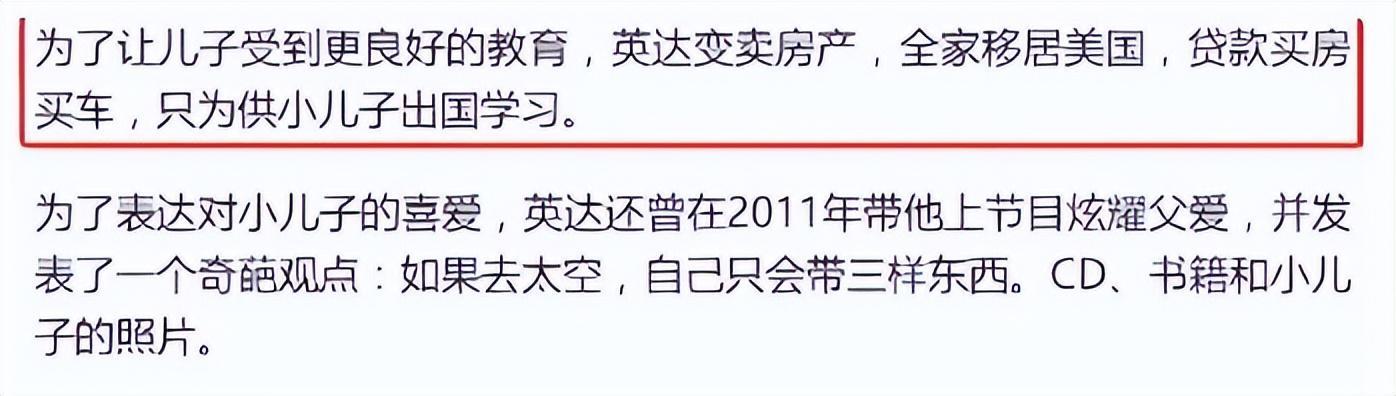 英达与梁欢结婚后,对她的儿子英如嫡宠爱有加,无论是在生活上还是教育上都给予了最好的。