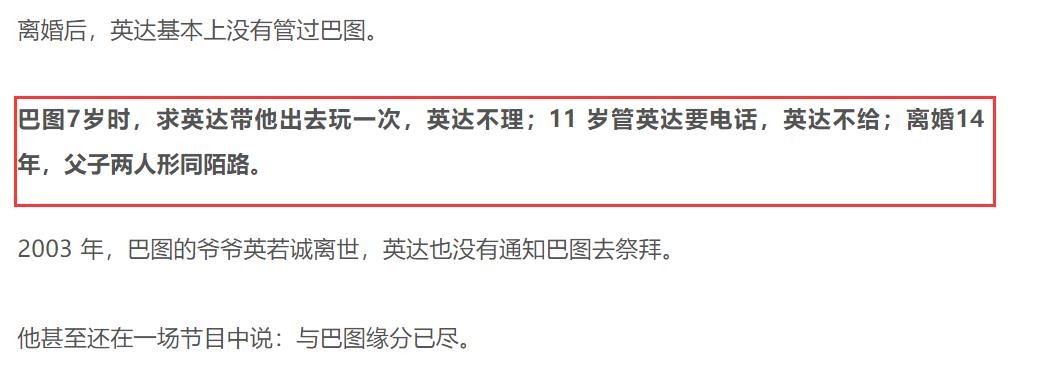 更令人心寒的是,在爷爷去世这样重要的时刻,英达也没有告知巴图。