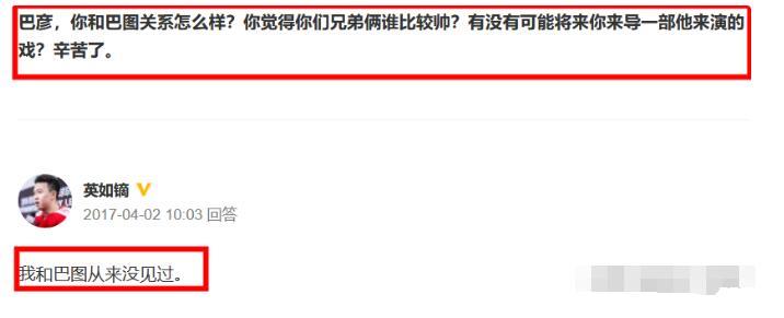 曾有网友提问英如镝关于他与巴图的关系,英如镝坦言两人从未见过面。
