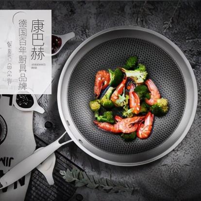 在康巴赫以往提供的故事文本里,康巴赫一直信誓旦旦地宣称,蜂窝不粘是它的“原创发明”、“黑科技”“德国技术”。但康巴赫在故事里,居然先后为这项技术描述了两个灵感源泉:一个是周和平先生多年前在德国看见中世纪盔甲受到启发后研发出了蜂窝不粘的故事,另一个是多年前受德国顶尖“蚀刻”刀具启发将技术迁移到炊具上的故事,两件风马牛不相及的事,居然能启发同一款技术,也算稀奇。