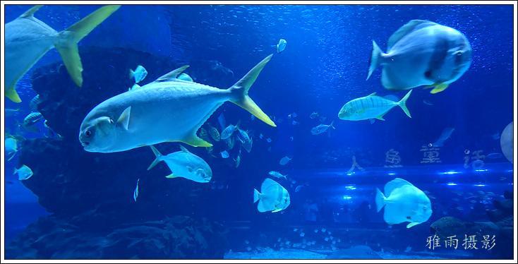 在白鯨展区,一个硕大的展示池从二楼延伸到三楼,这是国内体量最大的白鲸展区,主人给白鲸设计了一套“公寓,“小间”是卧室,“大间”是客厅,游客可抚摸和喂食白鲸,与其拍照等互动活动。从二楼上至三楼,鯨鲨展区就呈现在游客眼前,各种鲸鱼的美丽身姿,各种鲨鱼的凶猛姿态,在这里一一展现。