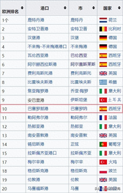 欧洲集装箱港2017年排名,巴塞罗那居第十