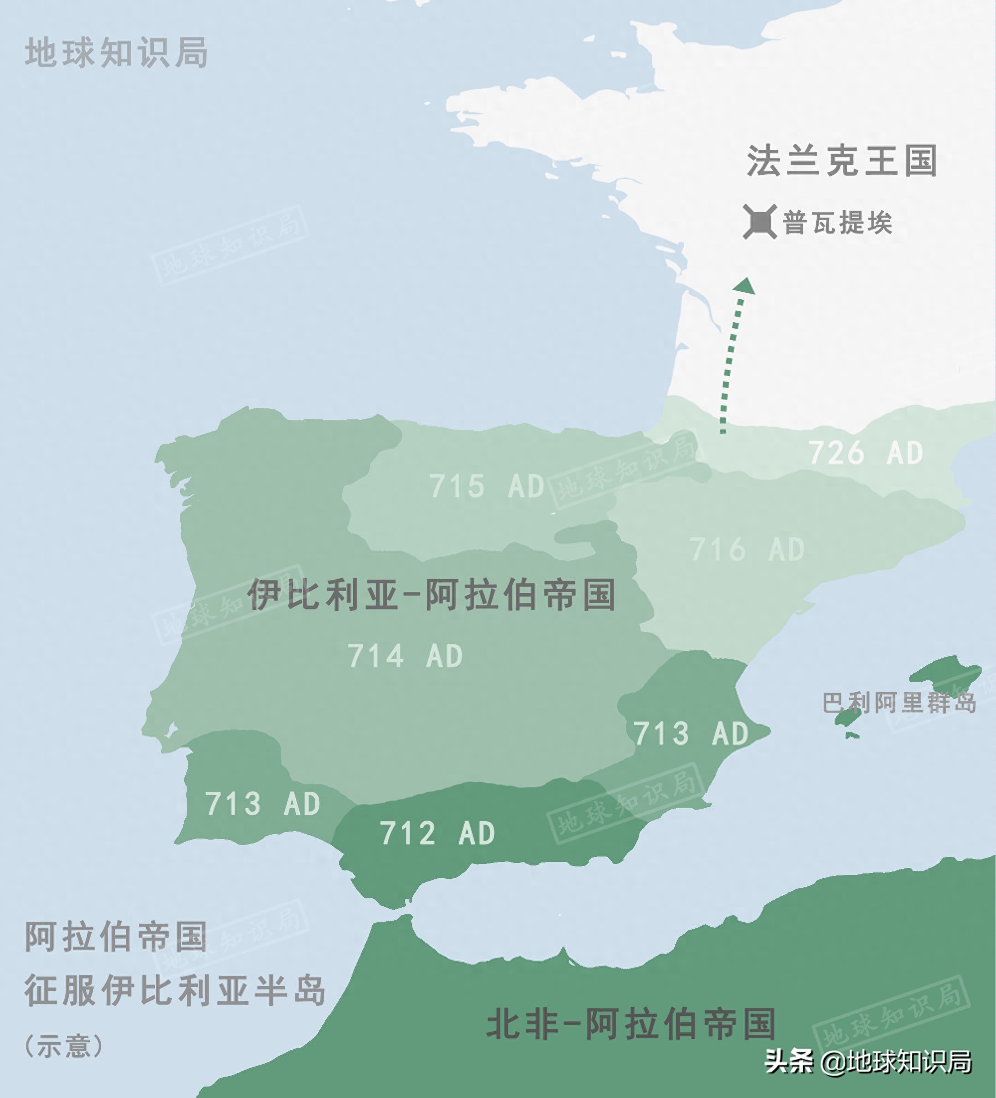 阿拉伯帝国一路北上,直到战败于法兰克-普瓦提埃▼