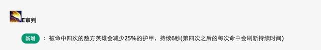 盖伦的E技能破甲效果是最新一次改动增加的。