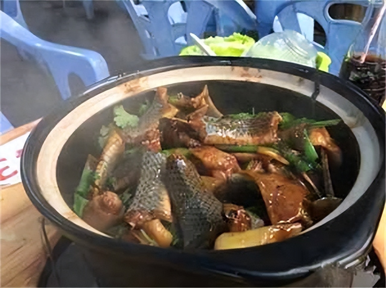 被毒蛇咬过的鸡,看似十分可怕,却成了一道名菜。这道菜就是广东著名的“蛇咬鸡”。又称“龙凤煲”。