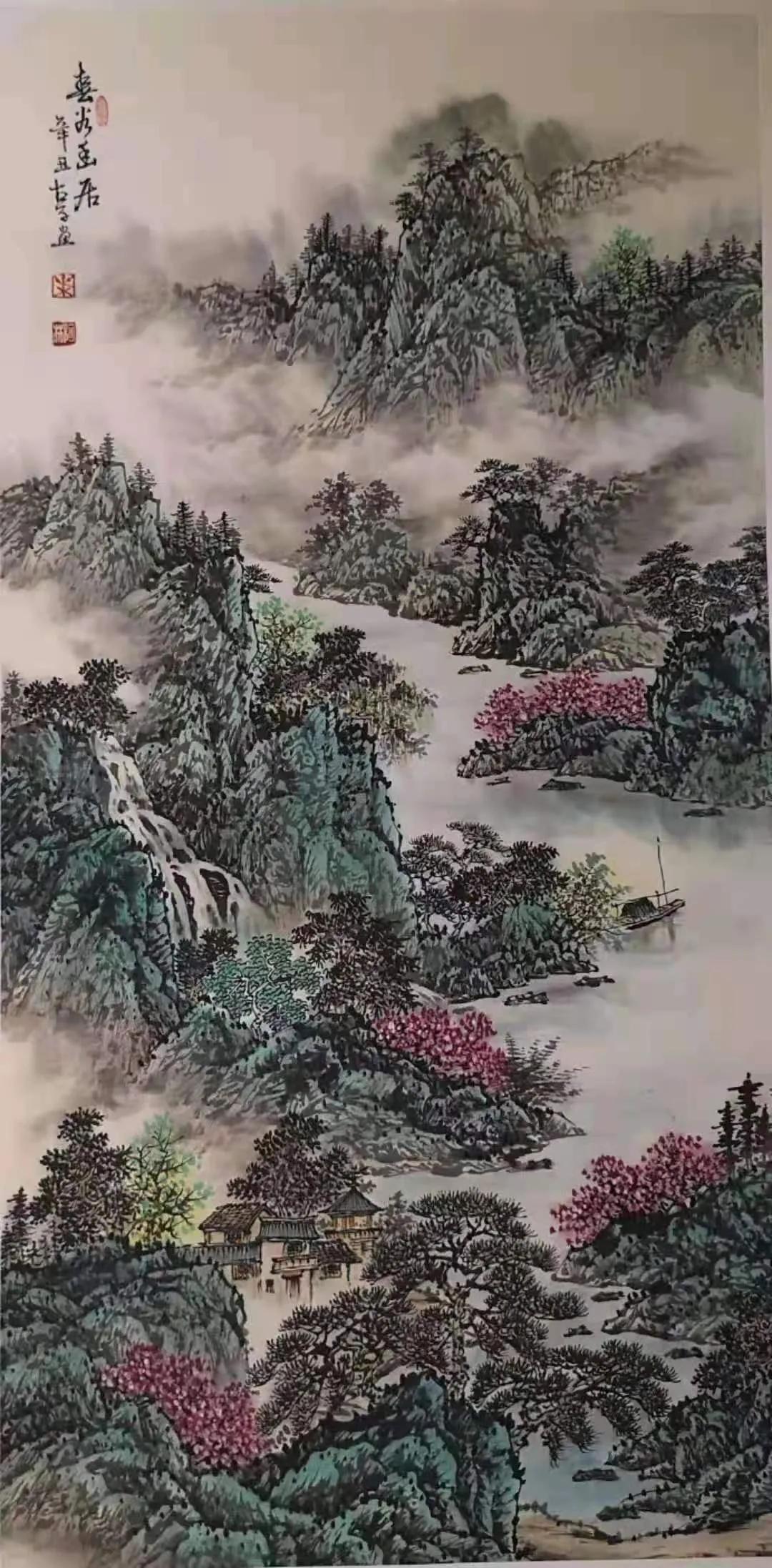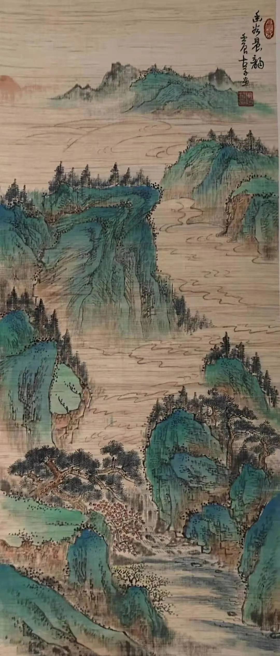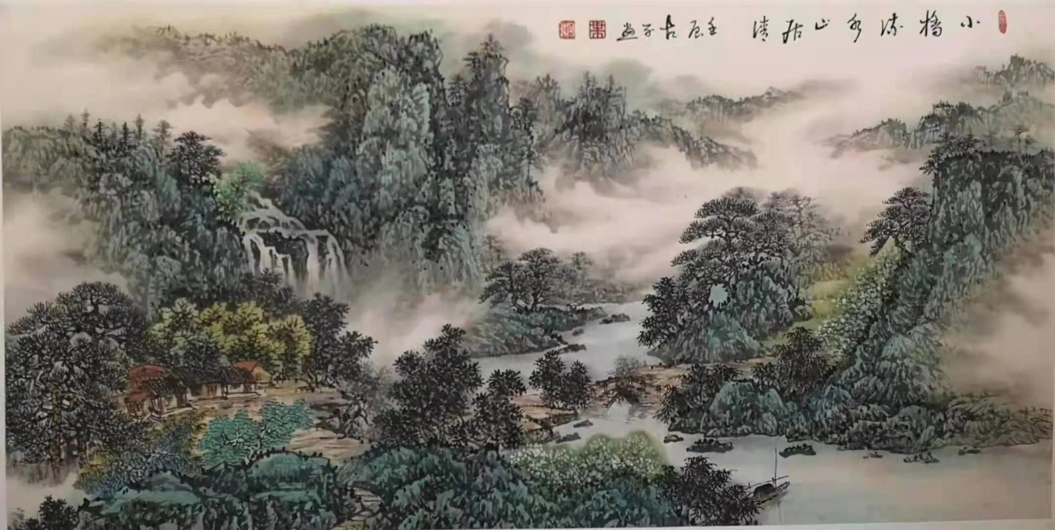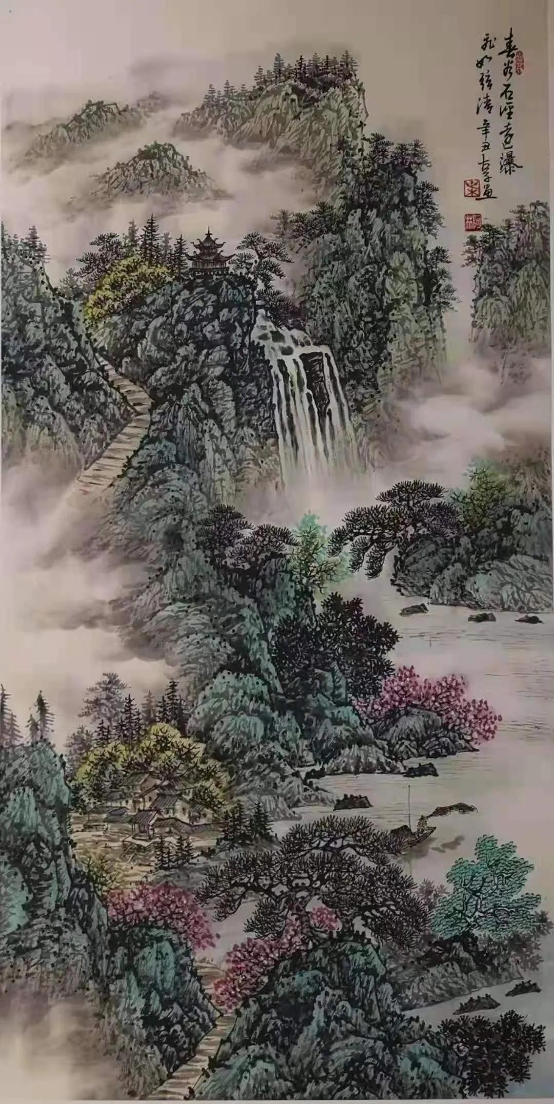 叶阿林老师擅长山水人物,亦能花鸟鱼虫。其创作往往将青绿工笔与水墨笔融为一体,立意新奇,融汇中西,追求创新而不失本然[强]。