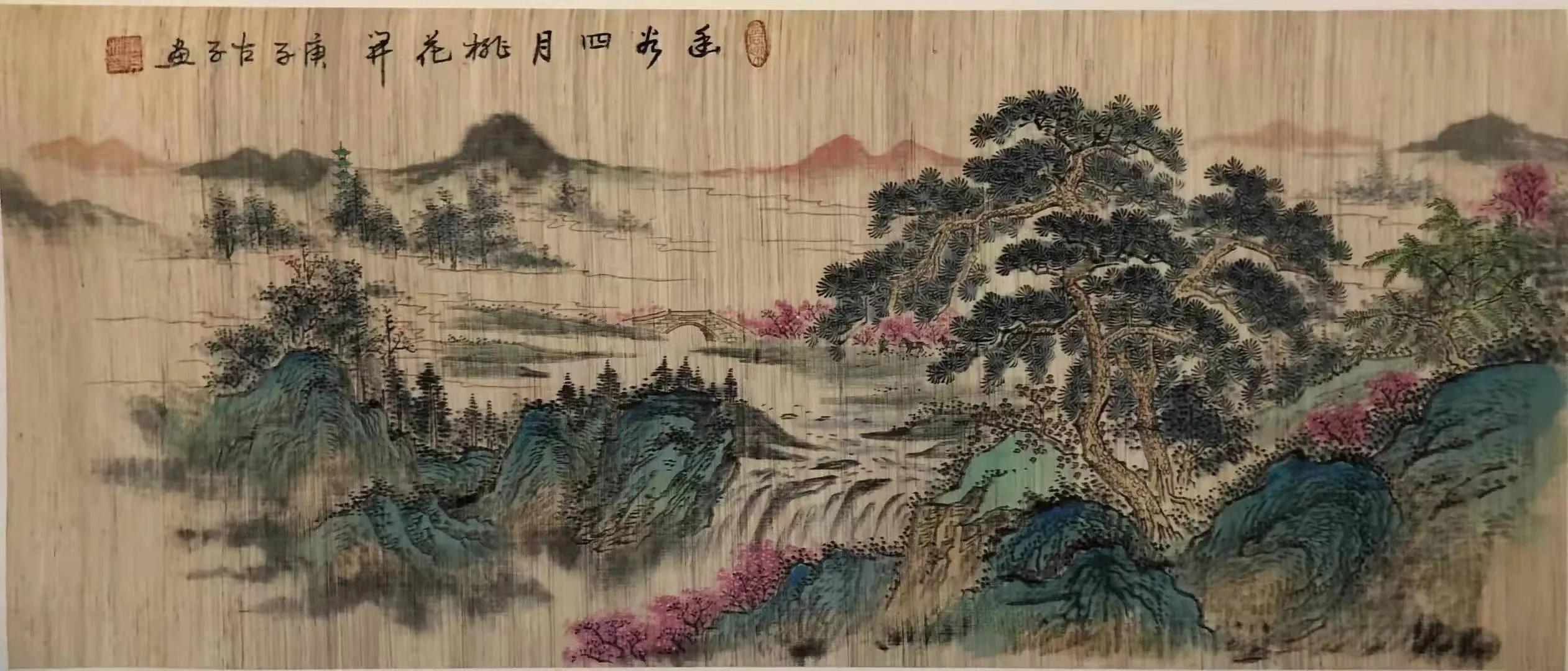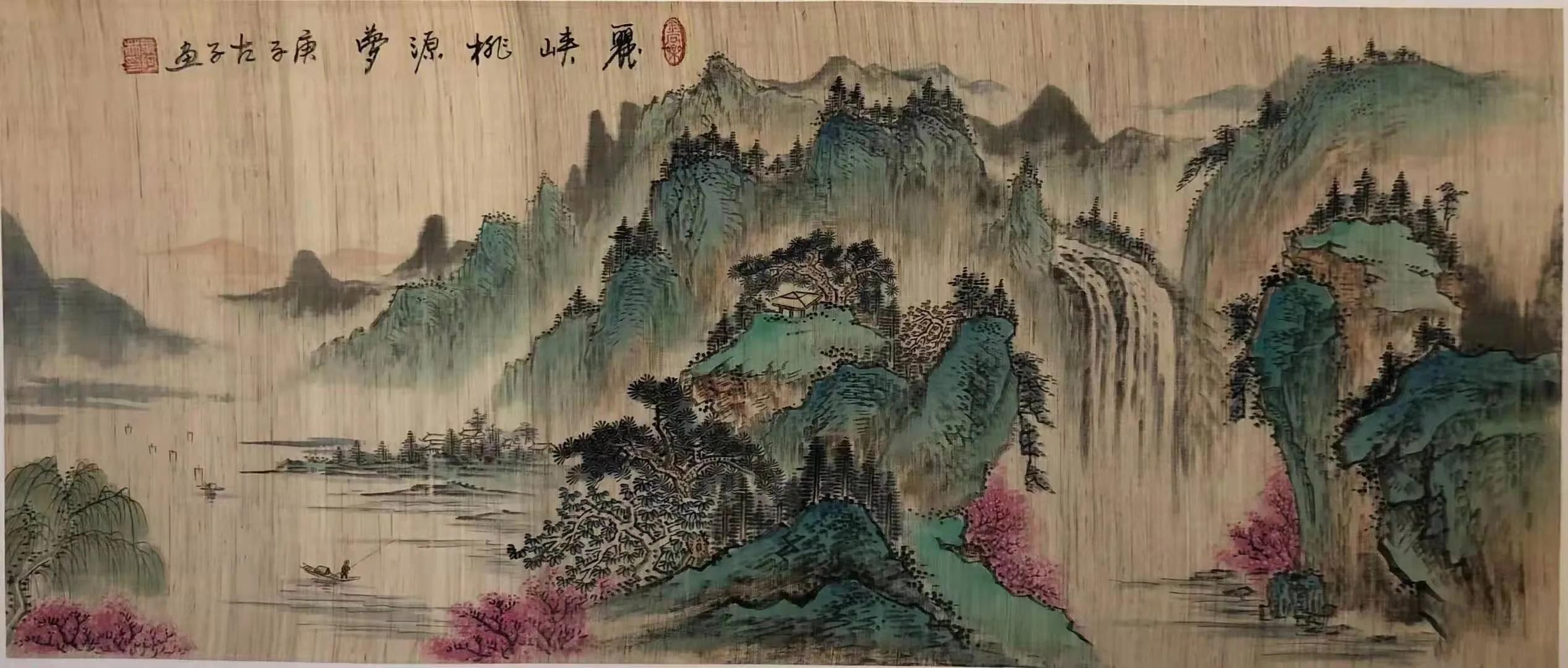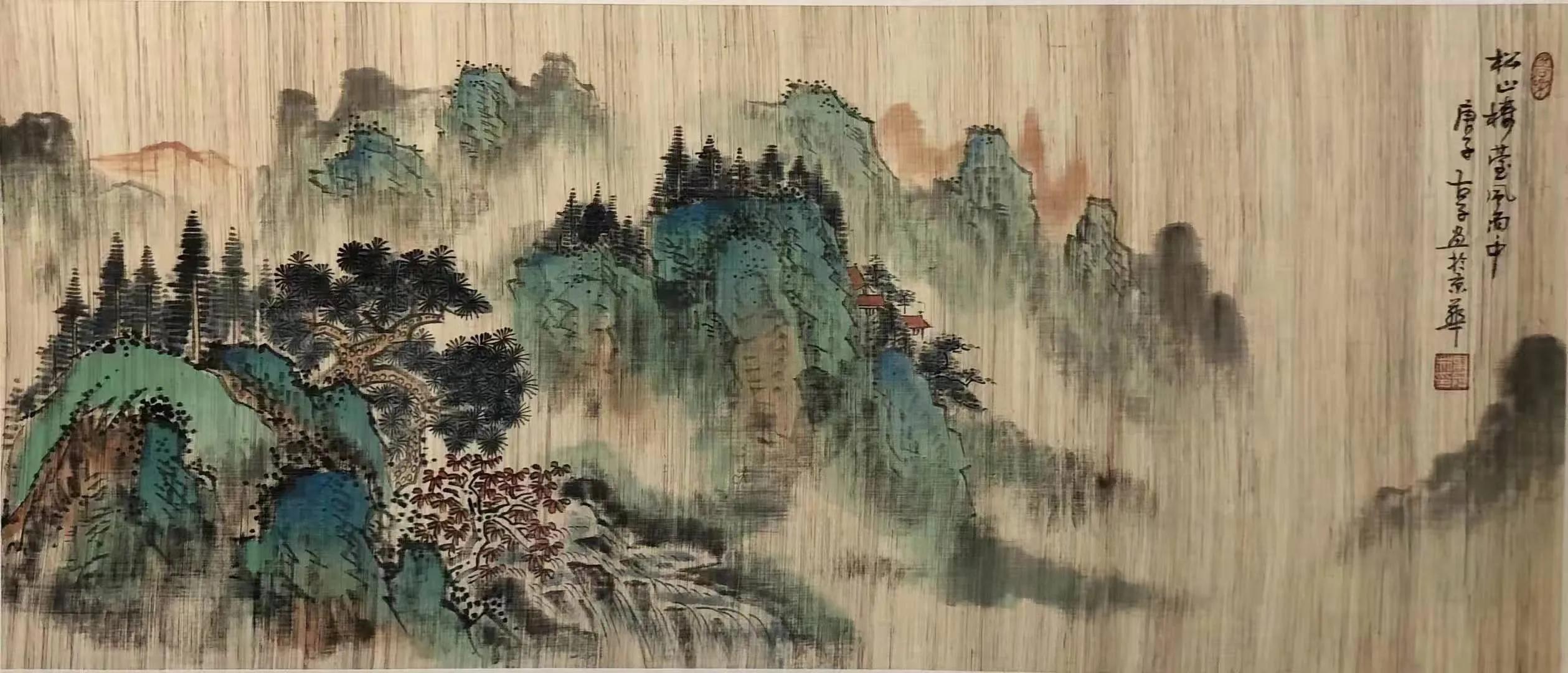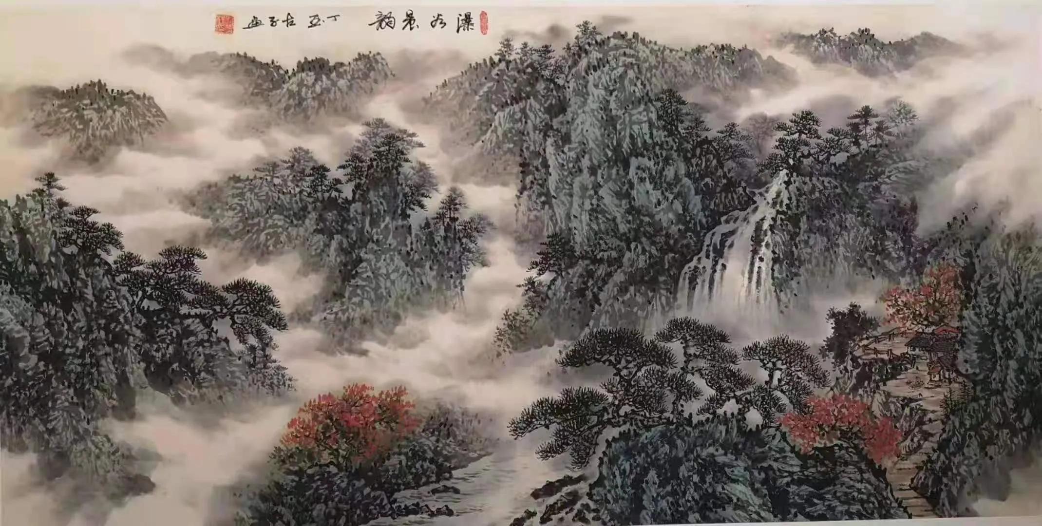 叶阿林老师擅长山水人物,亦能花鸟鱼虫。其创作往往将青绿工笔与水墨笔融为一体,立意新奇,融汇中西,追求创新而不失本然[强]。