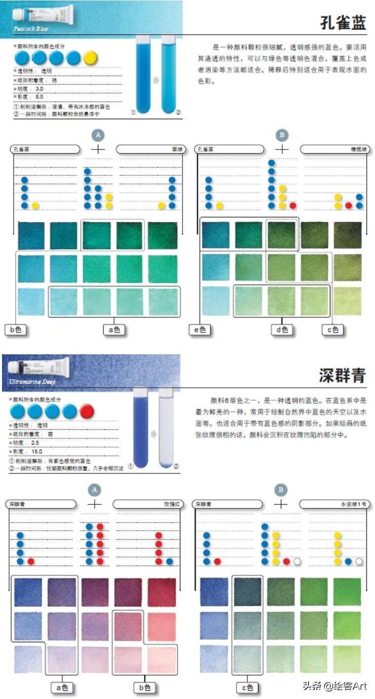 其实,我们绘画时常用的24色中,就有9种颜色能够用来调配与水相关的颜色~