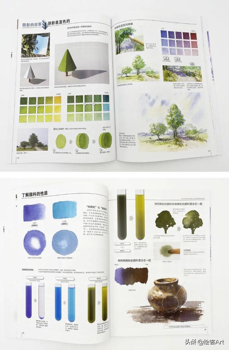 要想充分展现出景物的层次和整体画面,首先你要学会怎么调出有层次感的颜色,《让水彩画达到极致的调色技法 日本绘画大师铃木辉实的水彩配色心得》里就有很多配色技巧和案例~