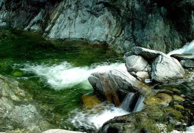 仙峪深五十余里,峪道窄狭清幽,山路崎岖蜿蜒,河流湍急,山石险峻,多处路段凿崖,加栈凌空通过。进峪五里处,有斜岭横阻,令人有谷尽路绝之感,然越岭横度,又平添柳暗花明的情趣。