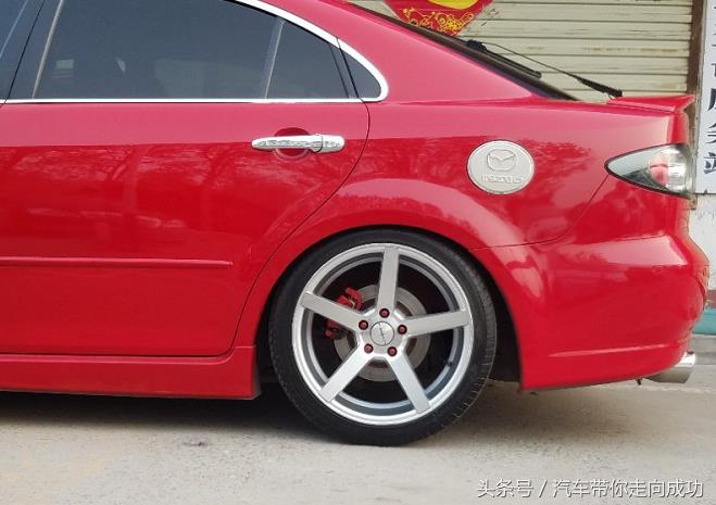 因为朋友是做二手车交易的,而这辆马自达6也是他在偶然的情况下收购的,车况可以说8成新,原车甚至没有任何瑕疵,下面就给大家仔细介绍一下这款轿车!从车身的侧面来看,朋友的这款马自达6,在外观上面没有大幅度的变动,你能从这张照片中看出他对车都改了哪里?如果你没看出来那我就给你小小的提示一番,轮毂的改装,车身减震的改装!