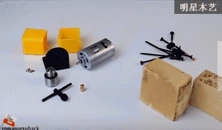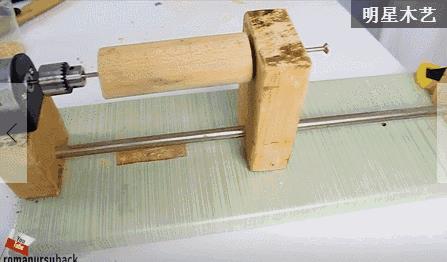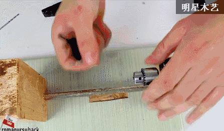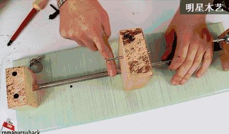找一根稍长一些的螺丝钉从另一侧旋进第二块木料中,刚好与钻头的位置相对应