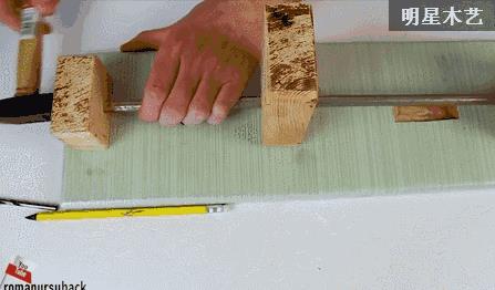 把要加工的木料固定好,调整第二块木料的位置固定好