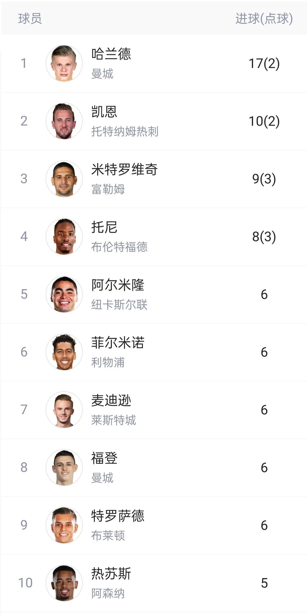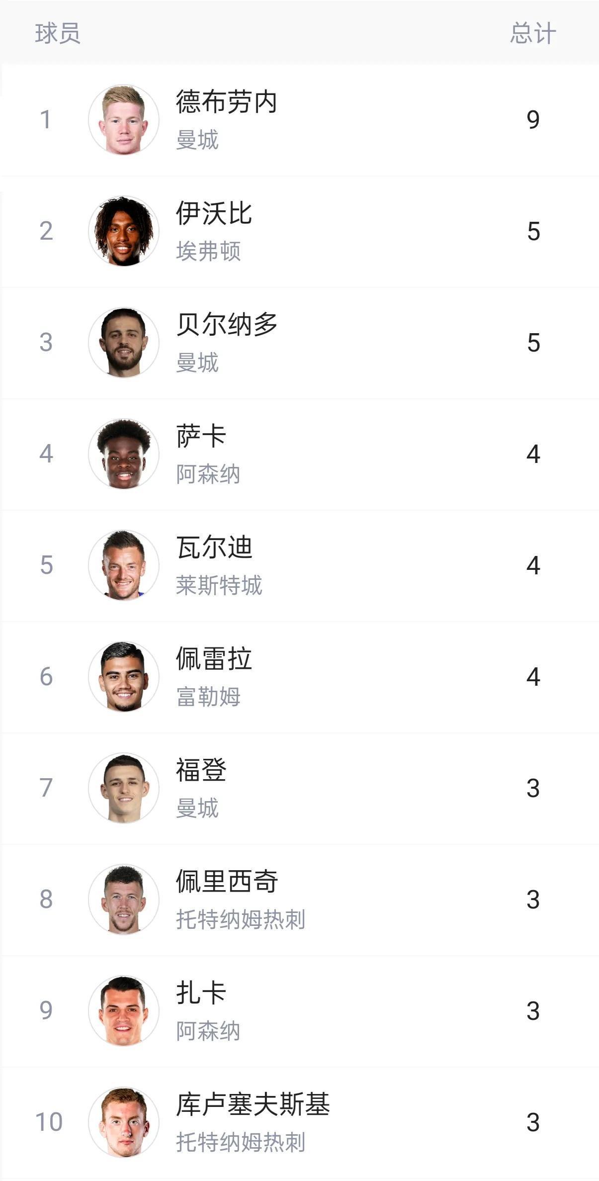 看完了本轮精彩的英超,让我们来看看最新的英超积分榜、射手榜、助攻榜!