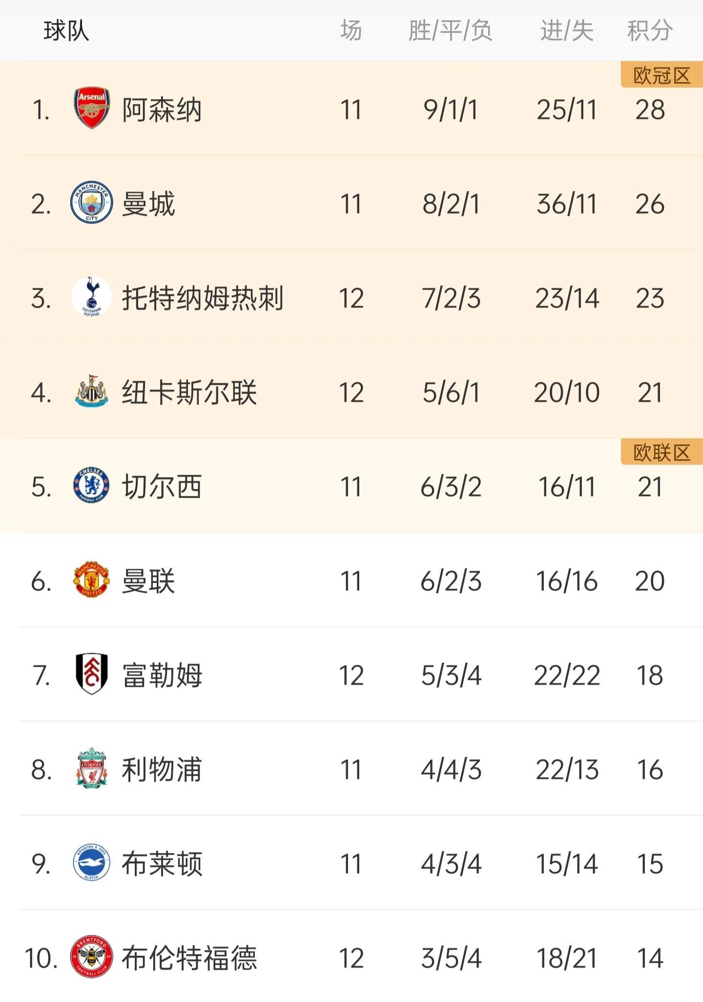 积分榜:本轮英超踢完之后,英超传统big6中,除了曼联与切尔西内战,只有曼城赢球,阿森纳、利物浦、热刺集体拉胯无法赢球,特别是利物浦、热刺在本轮因为自己非常糟糕的状态输球。纽卡斯尔也在本轮之后挺进了前四。