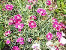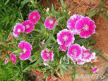石竹花但因其茎具节,膨大似竹,故名。为多年生草本植物,但一般作一、二年生栽培。北方秋播,来春开花;南方春播,夏秋开花。株高30-40厘米,直立簇生。茎直立,有节,多分枝,叶对生,条形或线状披针形。花萼筒圆形,花单朵或数朵簇生于茎顶,形成聚伞花序,花径2-3cm,花色有紫红、大红、粉红、紫红、纯白、红色、杂色,单瓣5枚或重瓣,先端锯齿状,微具香气。花瓣阳面中下部组成黑色美丽环纹,盛开时瓣面如碟闪着绒光,绚丽多彩。花期4月-10月,集中于4月-5月。蒴果矩圆形或长圆形,种子扁圆形,黑褐色。