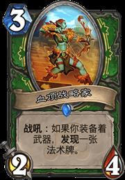 不同于蒙面选手极高的单卡质量,血顶战略家本身作为单卡并没有太多出彩的地方,但他却在整体上帮助武器奥秘体系成为了一个可行的套路。在砰砰版本之前,奥秘猎除了奥秘体系之外仍然需要依托于野兽体系1234费连拍的生物,因为在野兽之外猎人也没有什么可选择的优质生物了。而血顶战略家的出现使得奥秘猎得以作为一个独立的体系存在,不再需要熊鲨驯兽师作为中期生物的补足。还有一点是此前的奥秘猎无法带上猎人第一单卡蜡烛弓也是颇为可惜的,血顶战略家使得奥秘猎有理由带上可能导致卡手的4把武器。