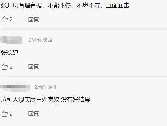 双方打嘴炮的时候,张开凤直接被二驴直呼大名,二驴那“张德建”仨字儿一出口,本来还支棱的张开凤,就吓得躲到了屏幕外。