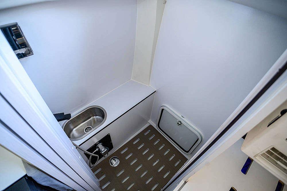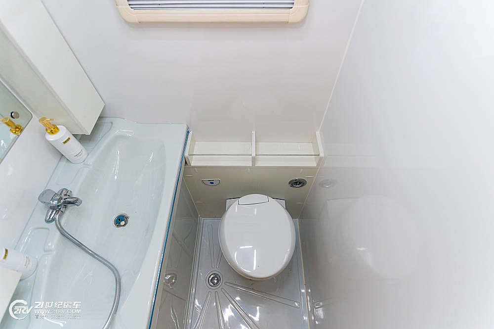 卫生间采用独立式干湿一体布局,整体使用吸塑防水处理,配备固定坐便器 、独立淋浴花洒、顶置双向换气扇 、浴室镜、毛巾杆等。水电路,整车搭载48V电能管理系统可实现高压直流快充,配备48V 150Ah锂电池,3kW充电逆变一体机、560W太阳能充电板。水路方面包括210L双水箱设计(180L主水箱+30L驼峰水箱,驼峰水箱为选装)、50L灰水箱、独立燃油加热器等配置。