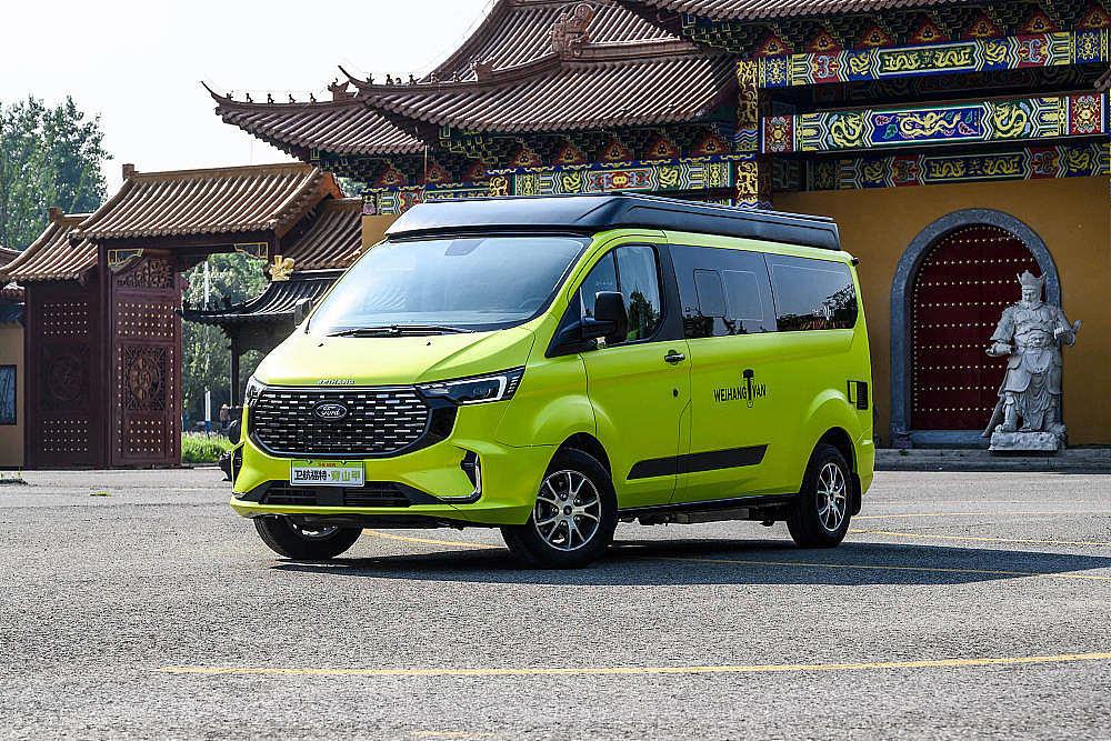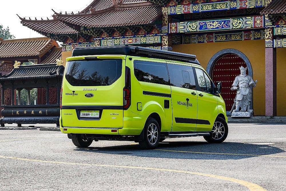整车尺寸为5341x1986x2017 (mm),基于江铃福特全顺底盘,轴距为3300mm,额定载客6人,轮胎尺寸为215/65 R19,动力上搭载了一台2.0T汽油发动机,最大功率162kW,最大扭矩350N·m,匹配9AT自动变速箱,满足国六排放标准。