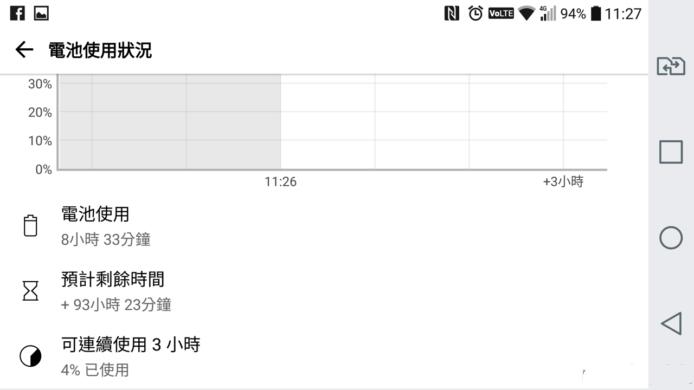 另外,笔者发现 V20 在待机时也十分省电,基本上笔者凌晨 3 点左右睡觉(对,笔者是夜猫一族……),而睡觉前拔掉充电线,到早上 11 点半左右起床一看,在待机情况下 V20 也只是用了约 6% 的电量(中间经过了 8.5 小时左右),所以大家如果睡觉前已为 V20 充好电,就可以放心拔掉充电线,放在睡床旁睡觉,然后早上当它作闹钟叫你起床了。