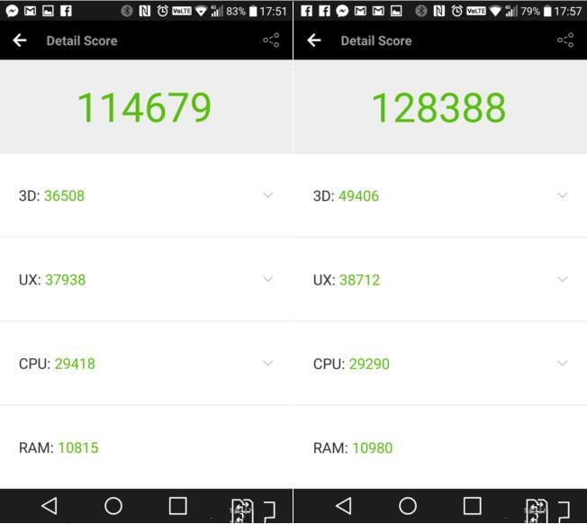 ▲既然并非采用最顶级的硬件规格,得分自然不是十分高,开启了游戏优化功能后,只获得 114,679 分,即使关闭了此功能,最高也只获得 128,388 分。当然,对于并非「跑分控」的一般用家来说,已经十分够用,最少笔者用了两星期,都未见有窒或者打机时不畅顺的问题出现,反而有些跑分更高的其他品牌的旗舰手机,打机时反而未见如 V20 般畅顺。