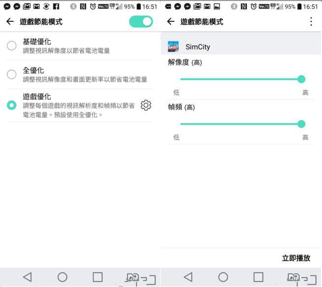▲其实笔者颇喜欢 LG V20 的游戏优化功能,它可以就指定游戏设定画面解像度及帧频,对于需要较多图像处理效能处理的游戏,可以调至高,这样玩游戏就会十分畅顺。当然,耗电相应亦会增加,但正如前文所言,V20 本身十分省电,只要大家不是所有程式及游戏都开启至最尽,就不用担心了。