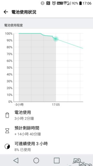 ▲即使连续使用,只要不是连续开启荧幕显示,去电都好慢,就像笔者驳住蓝牙耳机听歌,偶尔还开开荧幕玩 Facebook,用了 3 小时都只是用了 8% 电量,超省电!