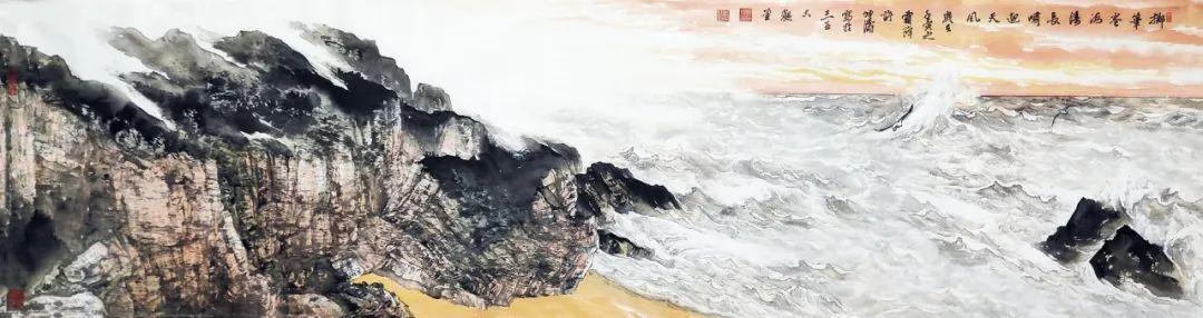 而今日的许坤涛先生显然就是比较倾向于后者一类,但和大部分完全固守的死板画家不同,许坤涛先生在山水海洋画的取境意识上则是有融入了更多的个人审美感受,即是以古意之深厚而升华今时之气象!海洋造意,独树一帜!