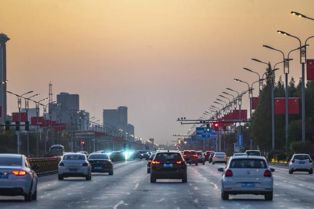 2021年11月13日,河南开封,郑开大道终点开封市大梁路西端金明广场