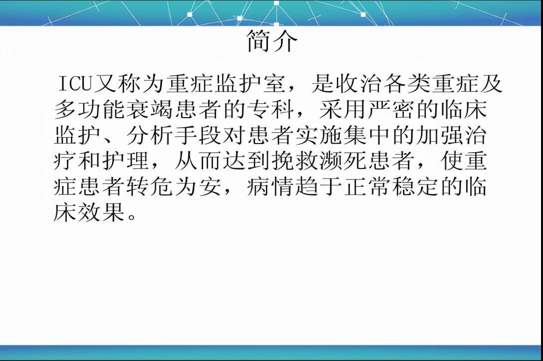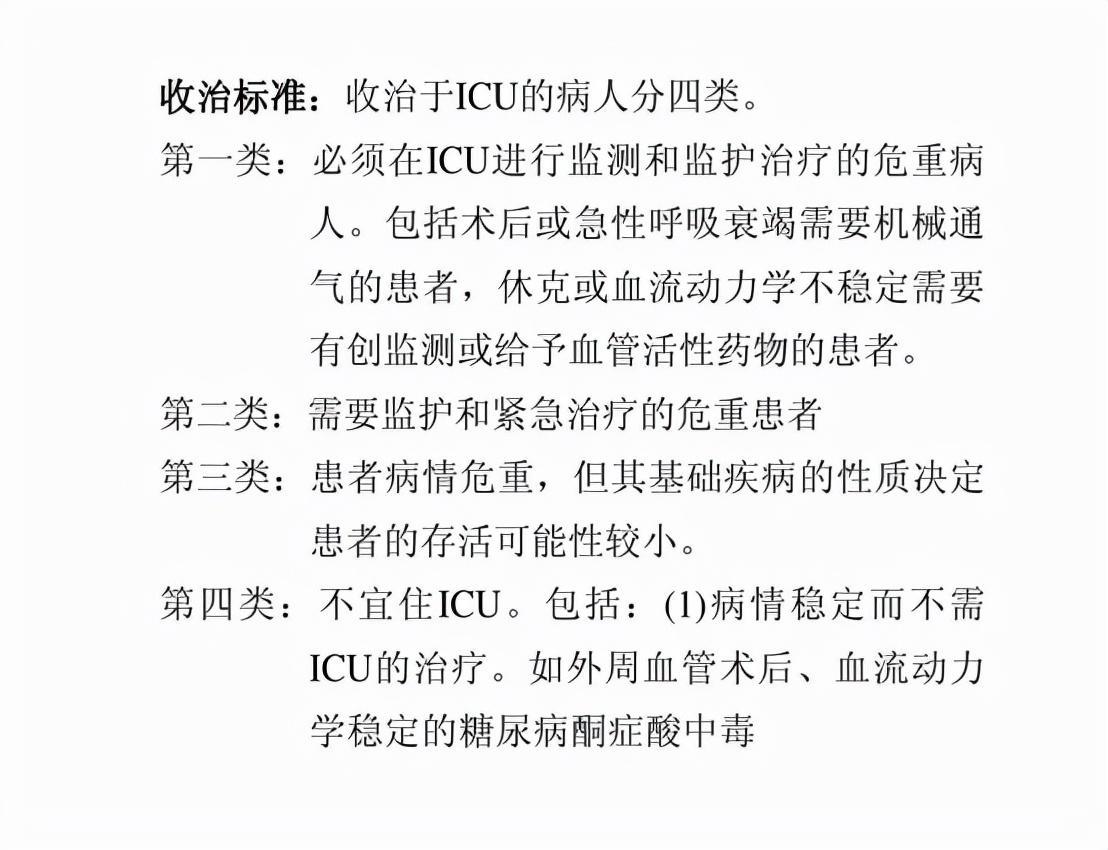 另外,并不是所有患者都能进ICU的,只有经过了专业医生的全面评估,符合转入标准的人,才能进入,而这种标准的规定显得十分严苛。通常情况下,大手术的术后监测需要在ICU进行,其次,严重休克需要心肺复苏的患者也要转入ICU接受治疗。