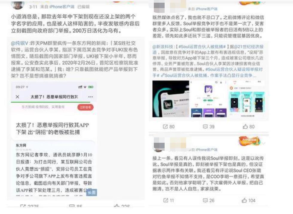 2020年3月,该案犯罪嫌疑人李某、范某因涉嫌损害商业信誉、商品声誉罪被普陀区人民检察院批准逮捕。据媒体此前报道,李某应为社交应用Soul的合伙人,负责公司产品运营和内容审核等工作。