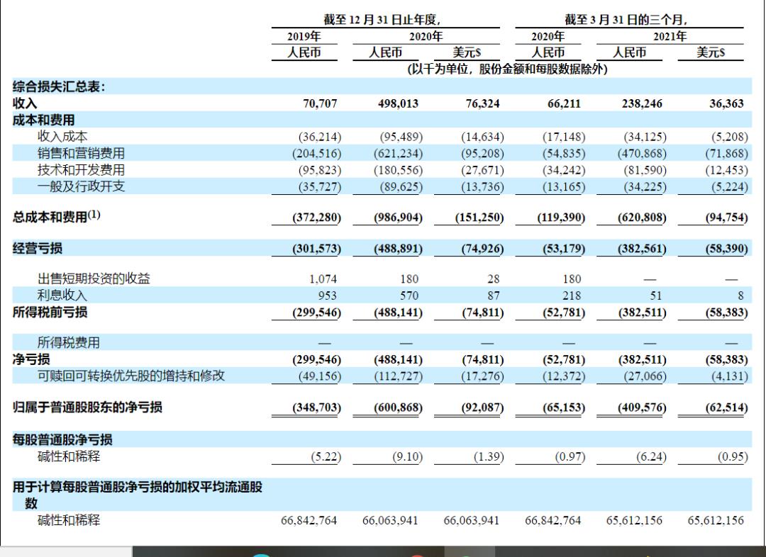 不过,2019至2020年,公司净亏损从3亿元扩大到4.88亿元,2021年一季度,公司再次净亏损3.83亿元,在27个月的时间中,该公司的累计亏损达到11.7亿元,平均一个月就要净亏损掉4千多万。公司的亏损原因主要是广告砸的太多了。公司主要的花费为营销费用,其营销费用的占比高达54.94%。招股说明书显示,其广告费用从2019年的1.97亿元暴增至2020年的6亿元,2021年一季度达到4.6亿元。
