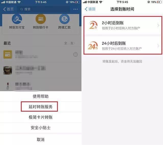 注:支付宝延时到账单次仅针对单个支付宝用户,在指定时间内,如果转账发现问题,可以随时取消。