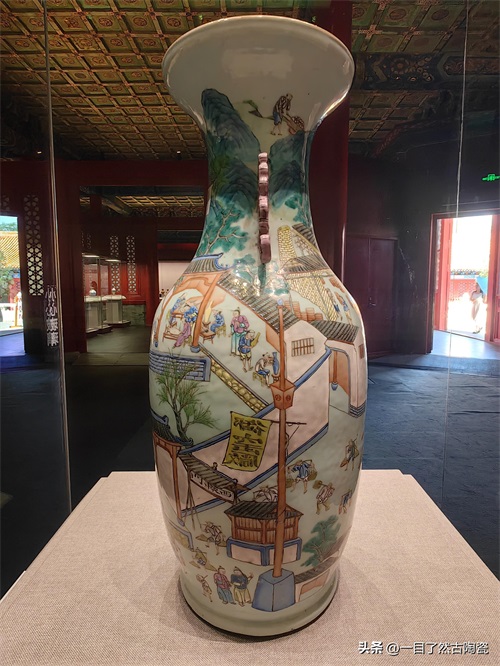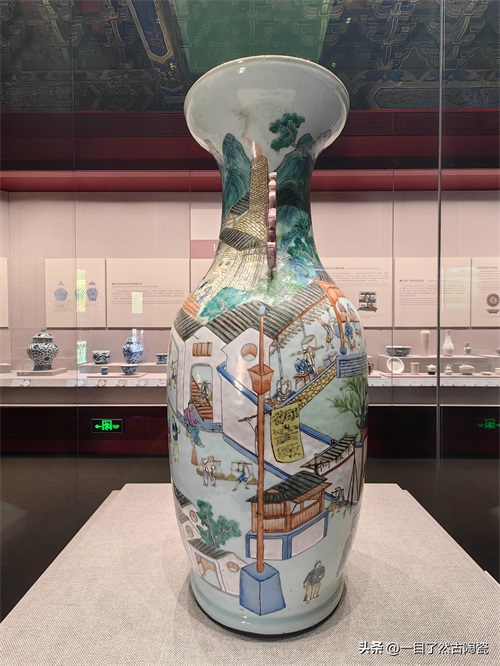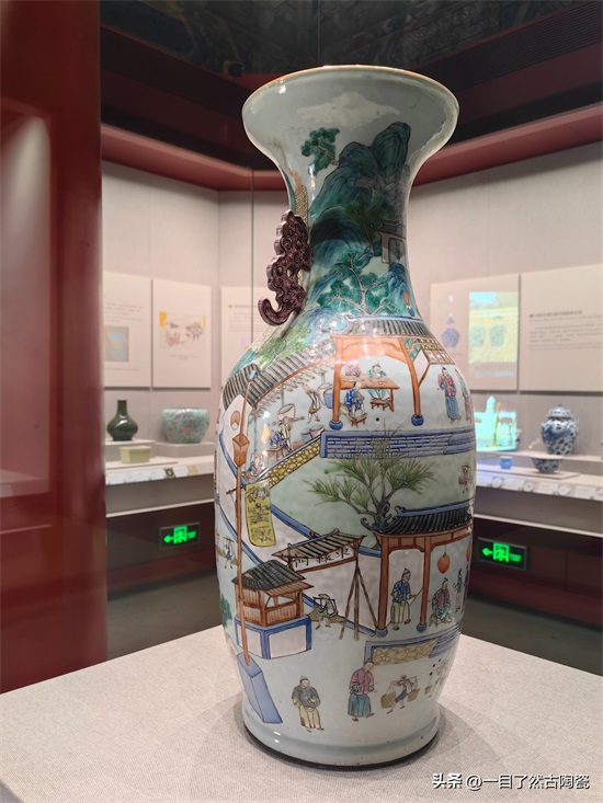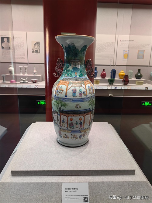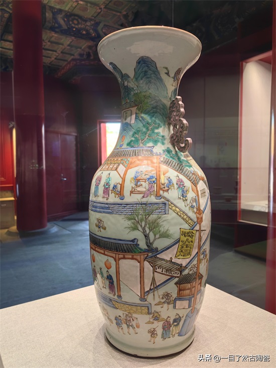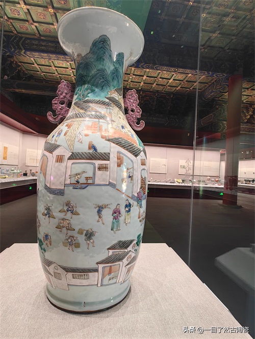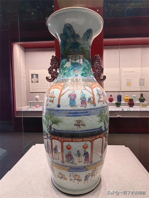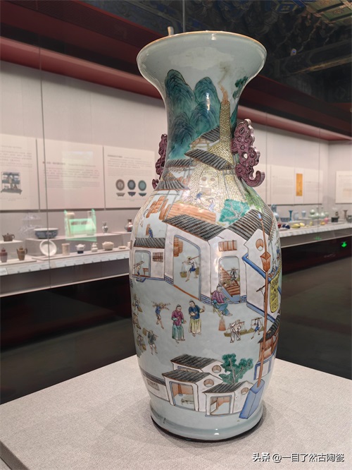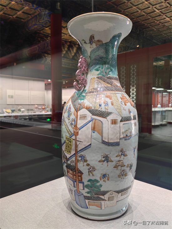 接下来将故宫博物院陶瓷馆的《清道光 粉彩御窑厂图螭耳瓶》转圈拍几个高清图给您欣赏,有机会还是您到故宫陶瓷馆亲眼观赏,会感受到绘制工艺和场景细节带来的震撼。