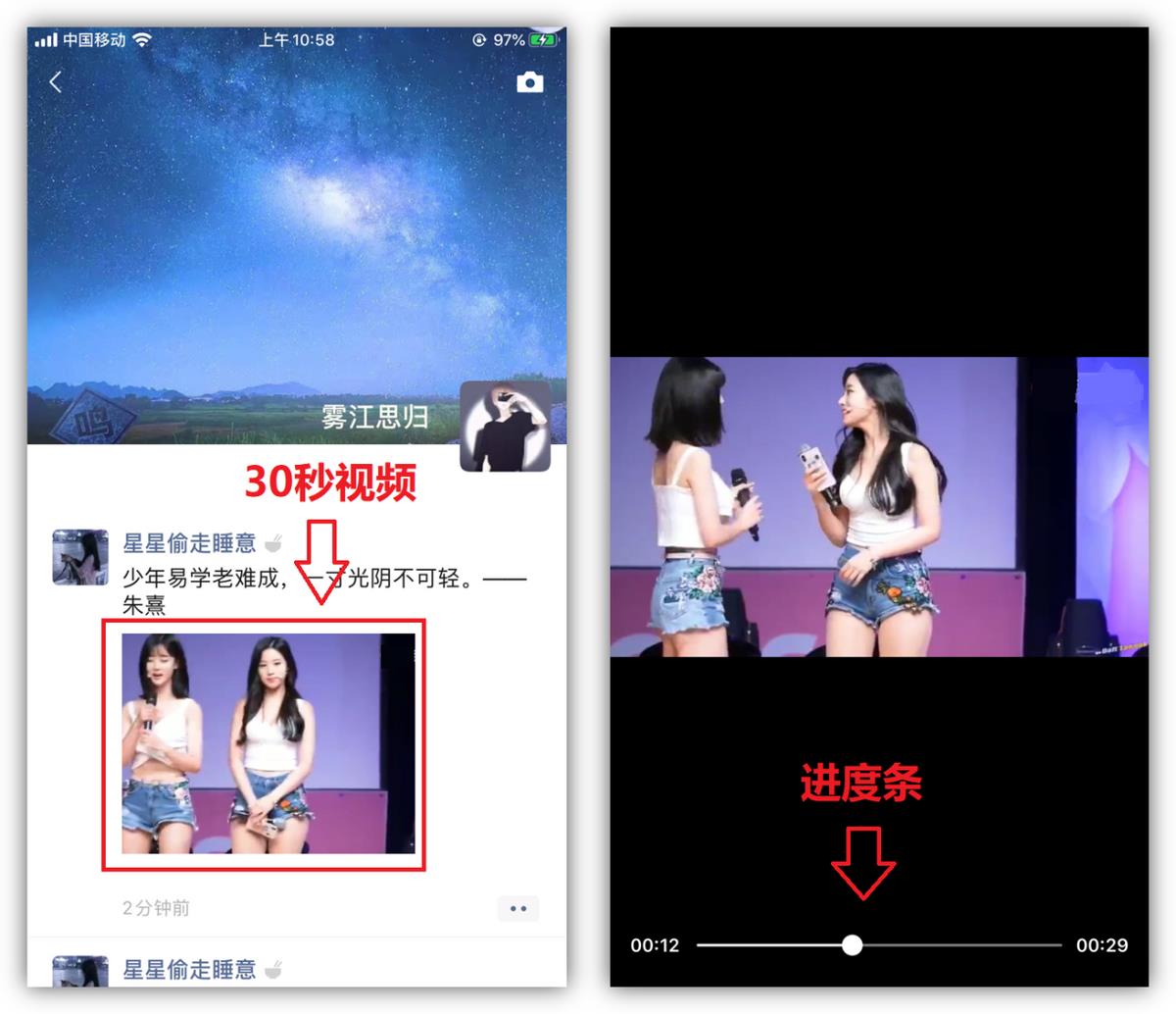 一直以来,用户都喜欢给语音增加进度条显示的功能,不过至今还未实现,到时视频进度条添加得很快,不管是聊天,还是朋友圈里的视频,都可以按照进度条调整时间进行查看。