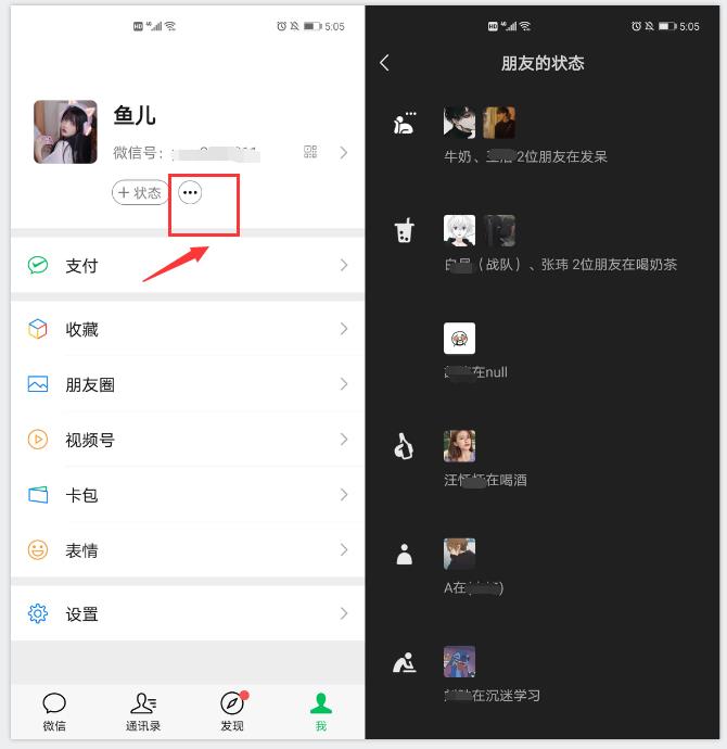 最新版的微信有第二个朋友圈,你发现了吗?不过这个朋友圈是状态栏里的,点击状态旁边的三个点标志,就能进入查看页面,看着是不是很像朋友圈?