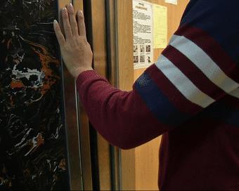 潘依振介绍,有些居民乘坐电梯,等人的时候会直接把身体夹在电梯门中,或者电梯要关门时,把手放在门中间阻碍电梯关门,其实,这样存在很大的安全隐患。