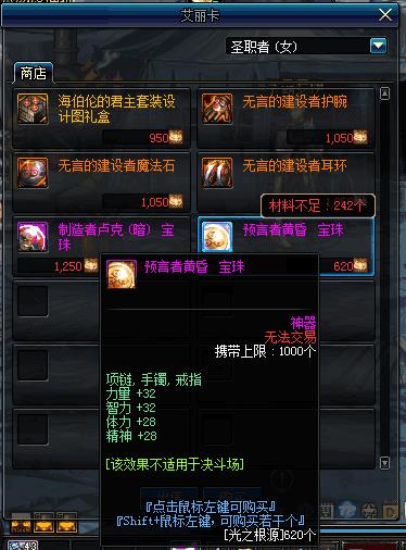 卢克每日也可以兑换一个预言者黄昏宝珠,智力+32点,大概需要13天刷出一个,周期略久。现在刷卢克每日的人还挺多,多去混混组队还是能慢慢刷出来的。